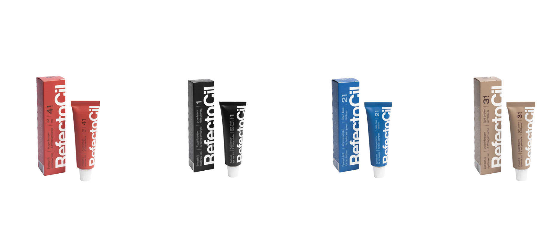 Egal, ob die Haare in Kupferrot oder Very Peri leuchten: Mit dem acht Farben umfassenden Sortiment von RefectoCil können Friseur*innen die Augenbrauen ihrer Kund*innen passend zu deren Coloration stylen. Enthalten sind die Töne Tiefschwarz, Naturbraun, Lichtbraun, Grafit, Rot, Kastanie, Tiefblau und Blauschwarz. Da die Farben untereinander mischbar sind, kann eine Vielzahl an Nuancen kreiert werden. Mit der Blonde Brow Blondierpaste lassen sich dunkle Augenbrauen um bis zu drei Stufen aufhellen.