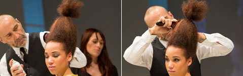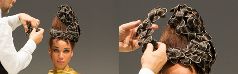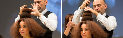 Bertram K, österreichischer Markenbotschafter für L'Oréal Professionnel, zaubert den perfekten Unterbau für Haarschmuck - gesehen auf der AUSTRIA HAIR 2014