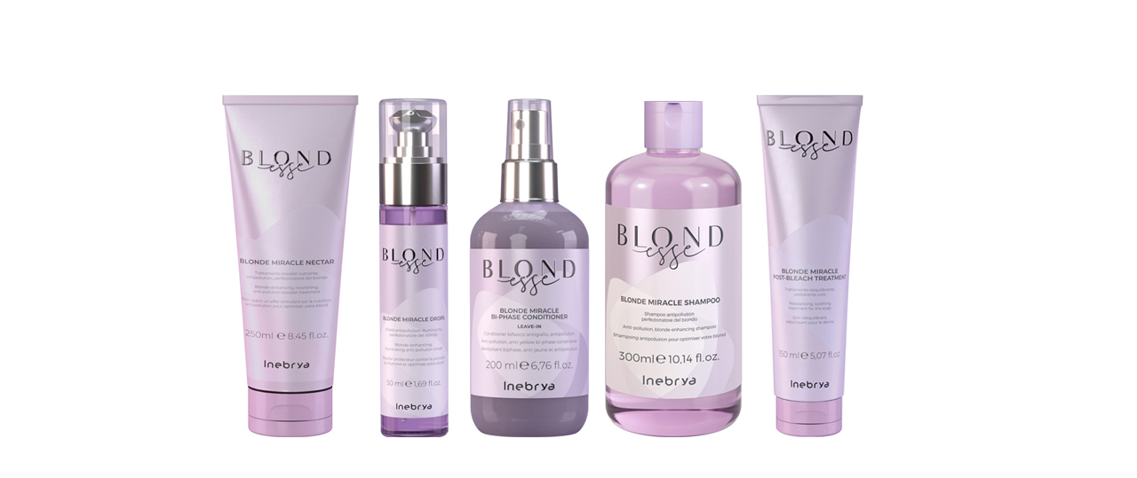 Die Inebrya Blondesse Pflegeserie sorgt für glänzendes, blondes Haar. Die fünf Produkte pflegen und schützen das Haar vor Umwelteinflüssen.