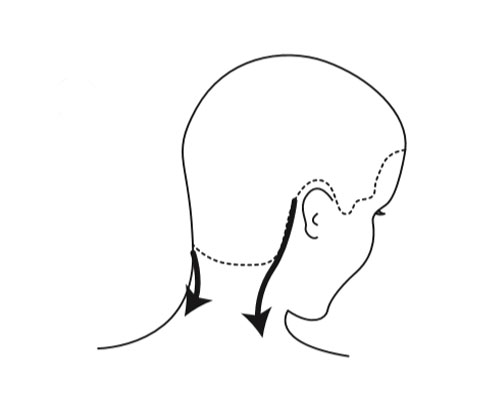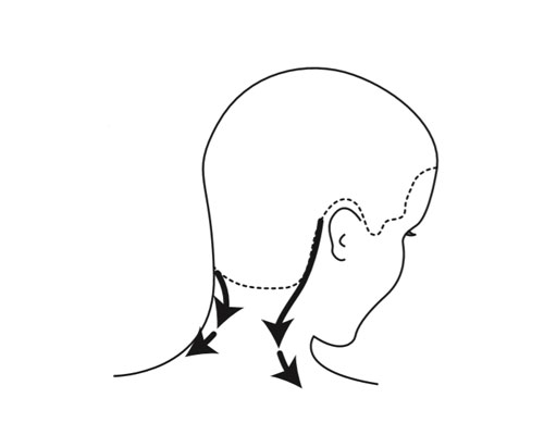 Step 3| Mit Daumen und Handballen bei mäßigem Druck sichelförmig vom Ohr zum Nacken streichen