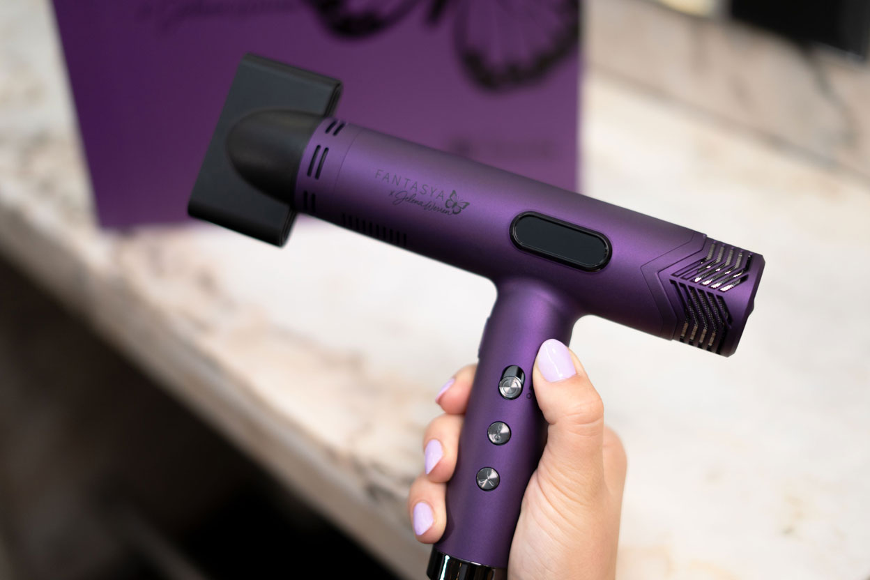 Der FANTASYA Haartrockner in der Jelena-Werren-Edition vereint hochmoderne Technologie mit ästhetischem Anspruch – im ikonischen Magic-Lila-Finish für den Wow-Effekt am Arbeitsplatz.