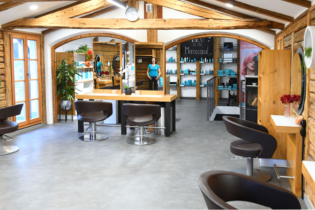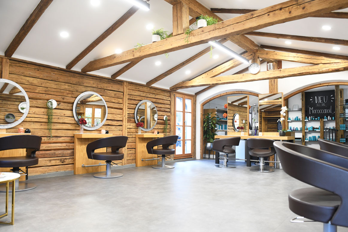 In Altdorf bei Landshut hat sich Erika Ploum für einen speziellen Salon-Stil entschieden. Was auf den ersten Blick nach Almhütte aussieht, ist ein hochwertiges Salon-Konzept aus Holz mit Überraschungseffekt.