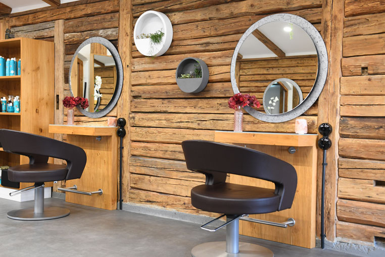 Der erste Eindruck, noch vor Betreten von Erikas Haarstudio, vermittelt ein gemütliches, einladendes Alm-Feeling. Betritt man den Salon, entpuppt sich die vermeintliche Apres-Ski-Hütte als Wellness Oase für das Haar.