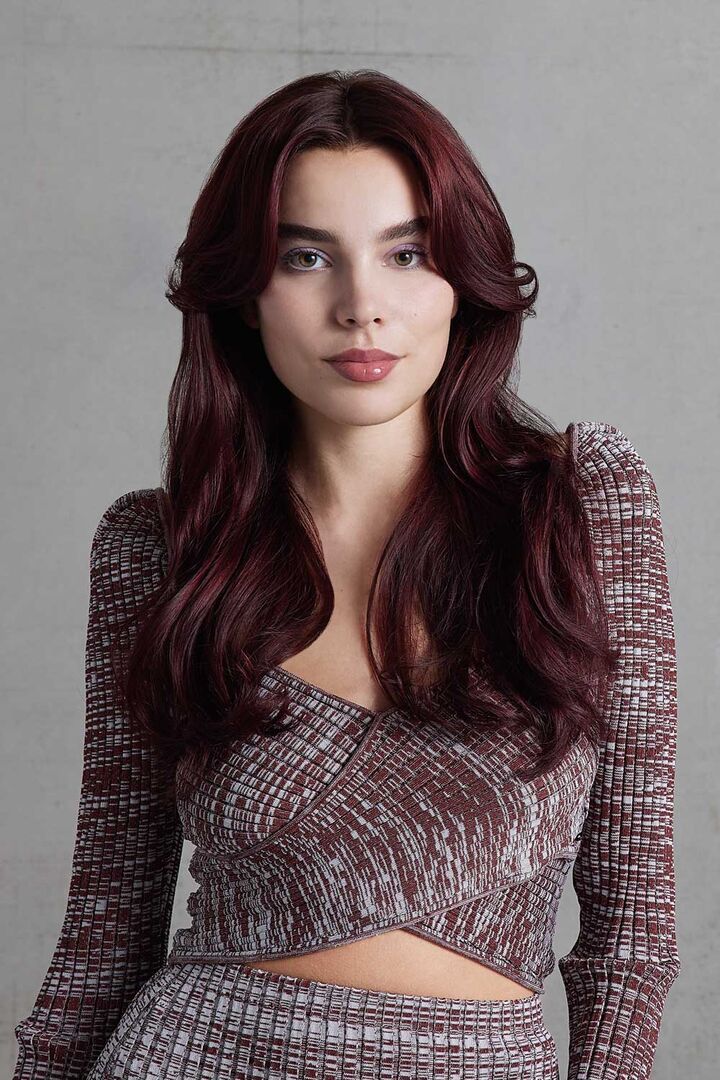 - Passion Pur: Hier schmeicheln raffiniert gesetzte Paintingtechniken (Money Pieces) einem Longbob in intensivem Kupferrot. Ein trendiger Langhaarlook mit Curtain Bangs leuchtet in purpurroten Farbnuancen.