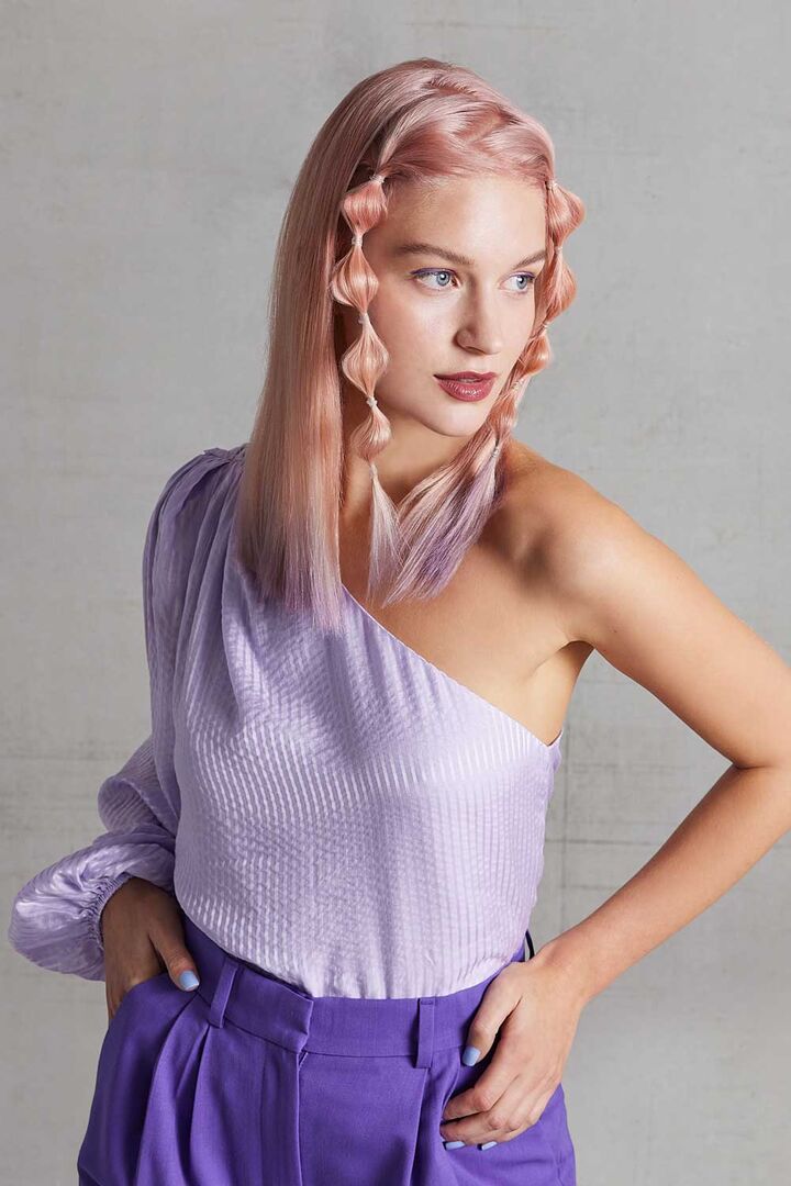- Fantasie Pur: Ein progressiver Haarschnitt in satten Blautönen und ein Longbob im irisierenden Rosé-Look mit auslaufenden Lilac-Effekten greifen die aktuellen TikTok-Trends auf.