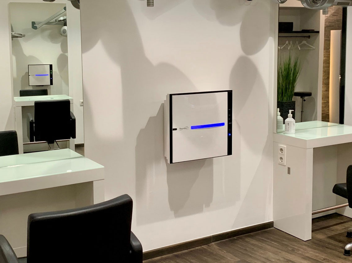 Raumlufttechnische Anlagen (RLT-Anlagen) filtern Frischluft von außen; ideal in Kombination mit Klimaanlagen kann Luft gleichzeitig auch erwärmt, gekühlt, be- oder entfeuchtet werden. Oder sie filtern Viren und Bakterien aus der Luft, so wie im Friseursalon des Deutschen Marcel Michels. Mit ►Luftfilteranlage bietet er Bestmögliches für seine Kunden.