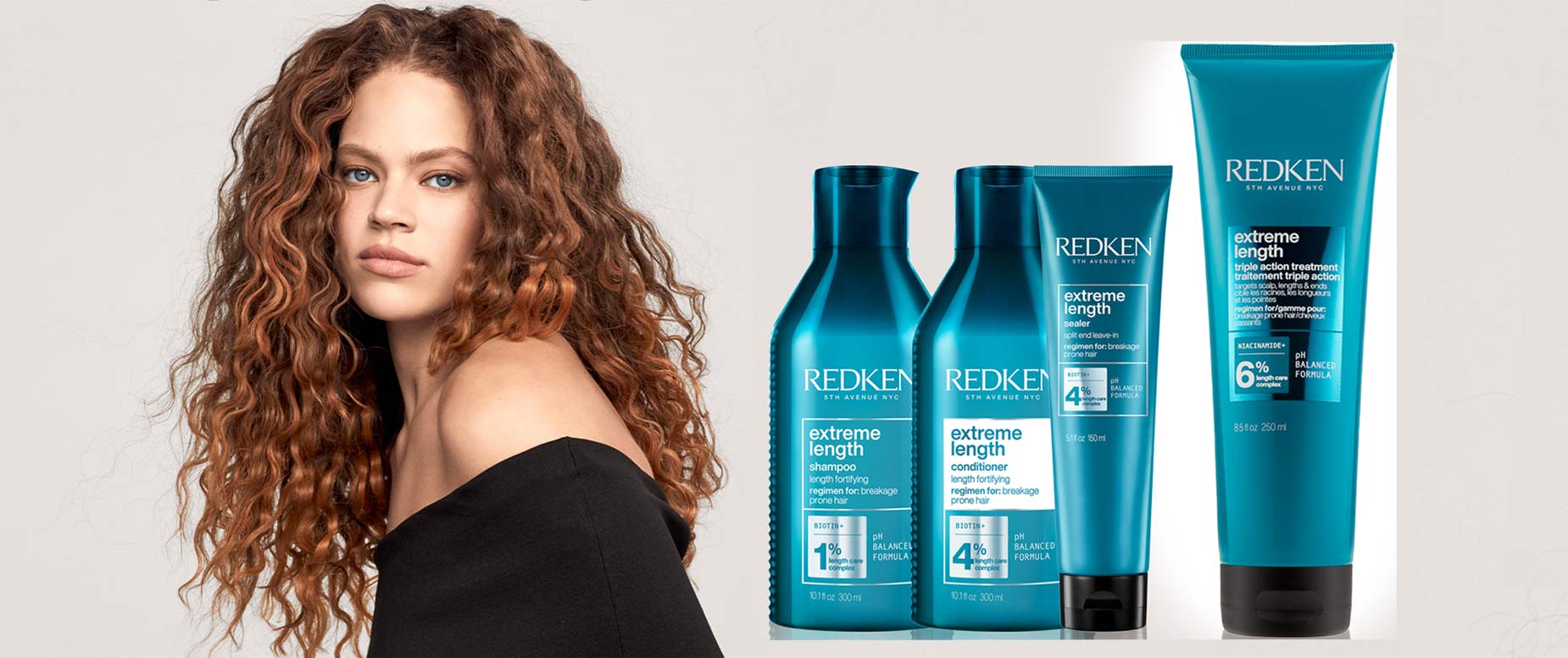 Die Redken Extreme-Length-Linie reduziert Haarbruch und Spliss mit einer Biotin-Rizinusöl-Formulierung. Neu ist die 5-Minuten Treatment Maske, die mit der bisher stärksten Length Care Komplex Formulierung Spliss sichtbar um bis zu 68 % reduziert. Die Kombination aus kationischen Tensiden, Silikonen und Glycerin lässt das Haar sofort gesünder wirken, ohne es zu beschweren.