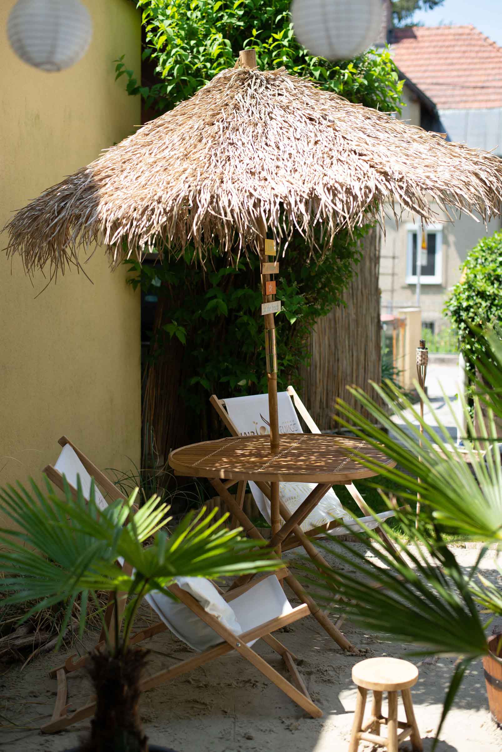 Helle Holzmöbel, weiße Wände und exotische Details schaffen ein Ambiente, das nicht nur optisch begeistert. Das Highlight: der Außenbereich mit eigenem Stylingplatz, einer Lounge-Ecke, echtem Sand und einem Teich. Auch die separaten Stylingräume und der optionale Silent-Service bieten gelassene Ruheoasen.
