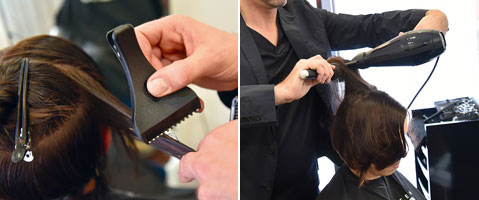 Step 2| Anschließend trockenföhnen mit Haartrockner Drynamic P und Rundbürste Atelier Graphite XL.