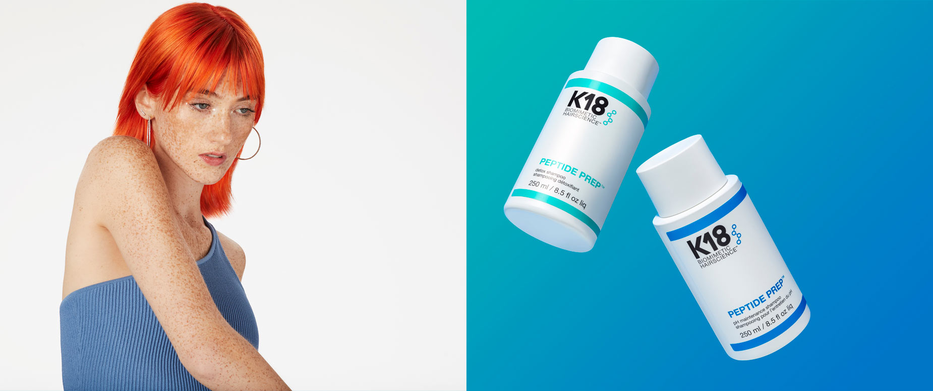 Die zwei neuen PEPTIDE PREP Shampoos von K18 bereiten das Haar optimal auf nachfolgende Behandlungen vor. Beide Shampoos beinhalten jeweils 17 Inhaltsstoffe, im Gegensatz zu durchschnittlichen Shampoos, die bis zu 40 Inhaltsstoffe enthalten. So reinigen sie ohne jegliche Füllstoffe und sorgen für ein optimales Haar- und Kopfhautmilieu. Zusätzlich sind sie mit dem K18 PEPTIDE angereichert, das wie ein Schutzschild wirkt indem es den Proteinverlust reduziert, der beim Waschen auftreten kann.