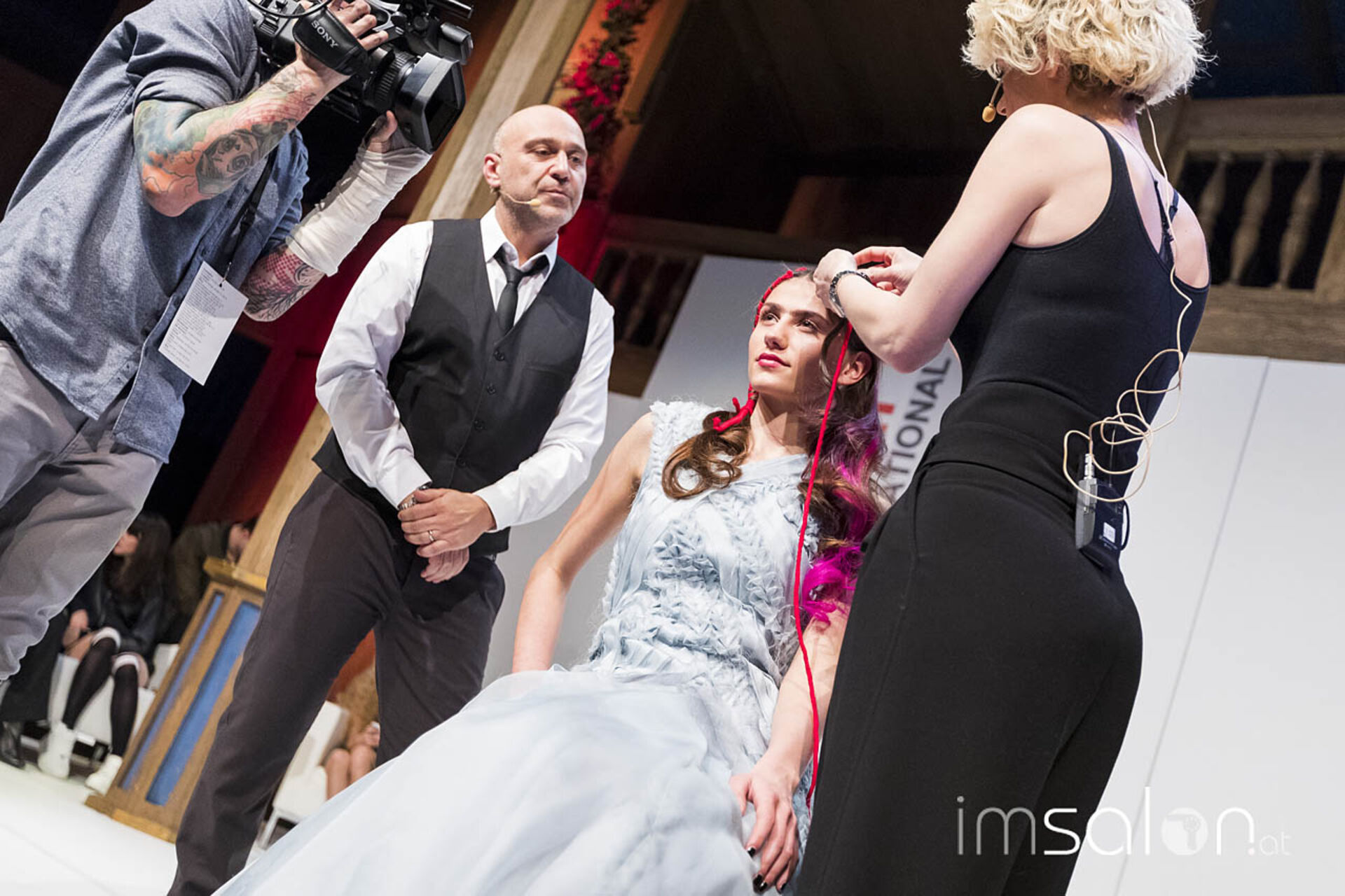 #LOREALPROAT prangte in großen Lettern auf der Bühne, Bertrams Thema des Tages: Digitalisierte Vernetzung mit Freunden, Kunden & Gleichgesinnten; wertvolle Tipps vom Fotoprofi inklusive und die Aufforderung, die Show zeitnah in social Media zu posten. Das war es auch, was Publikum und Modelle auf der Bühne taten.