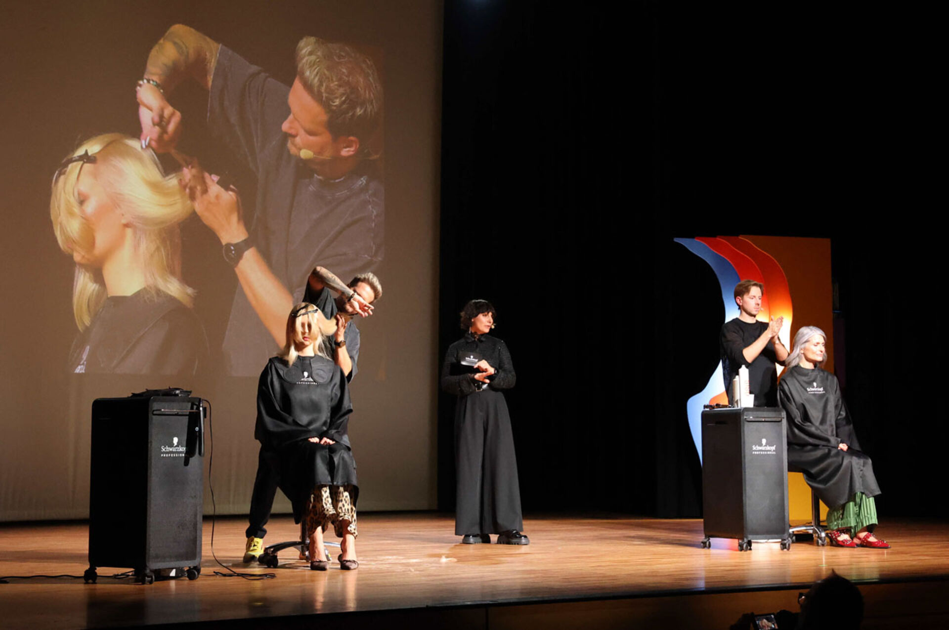 Unter dem Motto „für jeden Look die passende Lösung“ zeigte das Schwarzkopf Professional Team Corinna Egger (Moderation) und Oliver Kössler sowie Stage Artist & Coach David Schwarz, wie aktuelle Trendthemen im Salonalltag funktionieren: