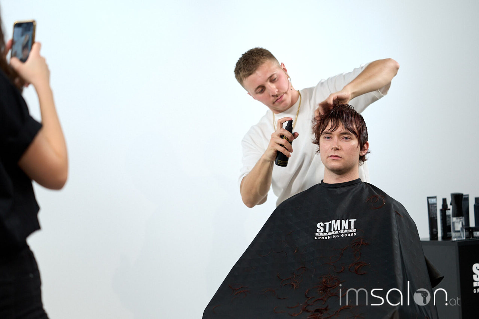 Für Bianca Kroupa (STMNT Grooming Goods) eine Selbstverständlichkeit: „Andrea vereint das Beste aus beiden Barber-Welten, für die die Marke STMNT steht. Zum einen die Präzisionsschnitte aus der UK Schule, die er selbst auch lebt, und zum anderen das Smoothfading aus den USA.“