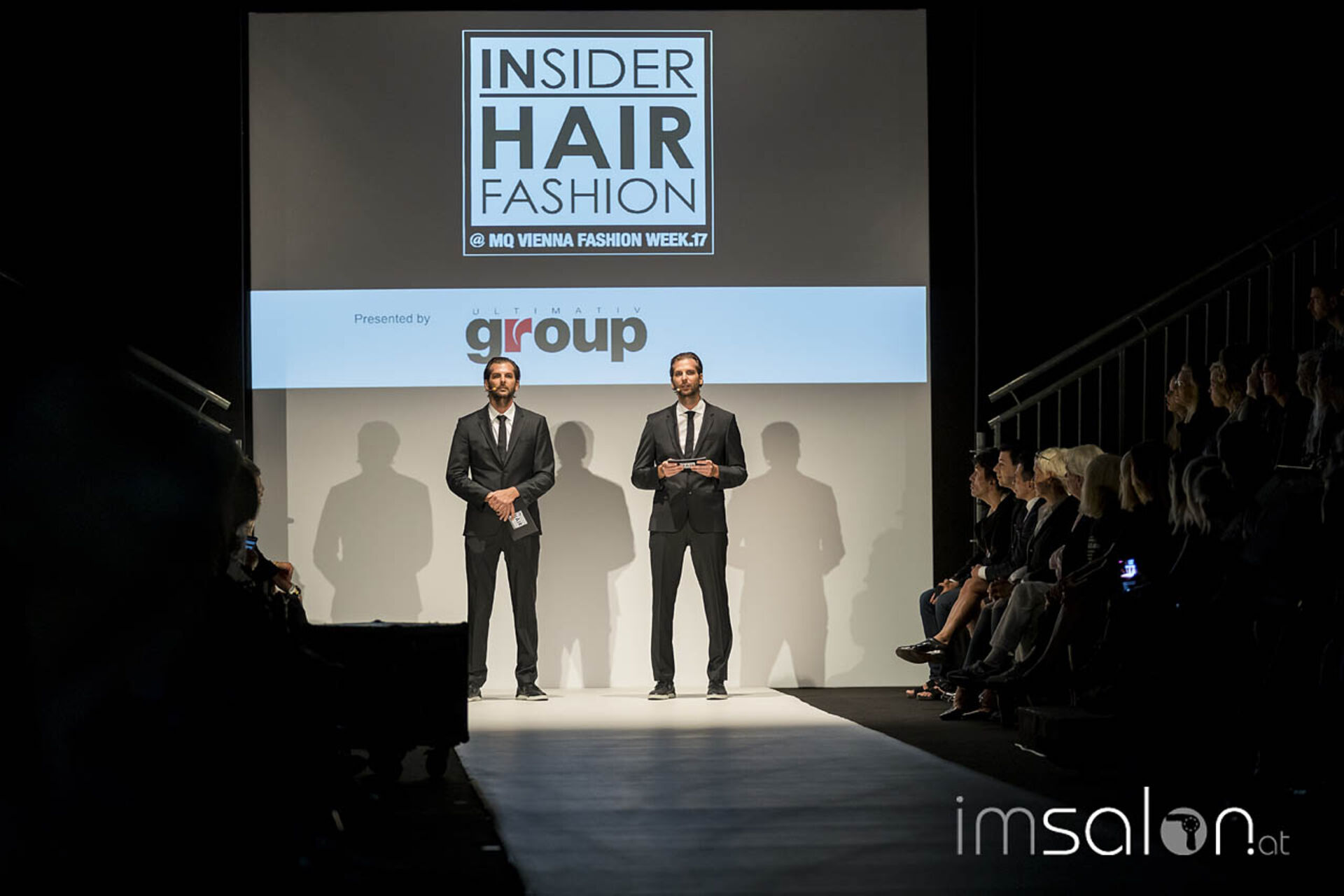 Marco Arena, Paul Falltrick und Frédéric Pavard verwandelten den Laufsteg zur inspirierenden Hair-Styling-Bühne, moderiert von Andreas und Patrick Raitz, Head of Hair der MQ Vienna Fashion Week und Inhaber der Ultimativ Group.