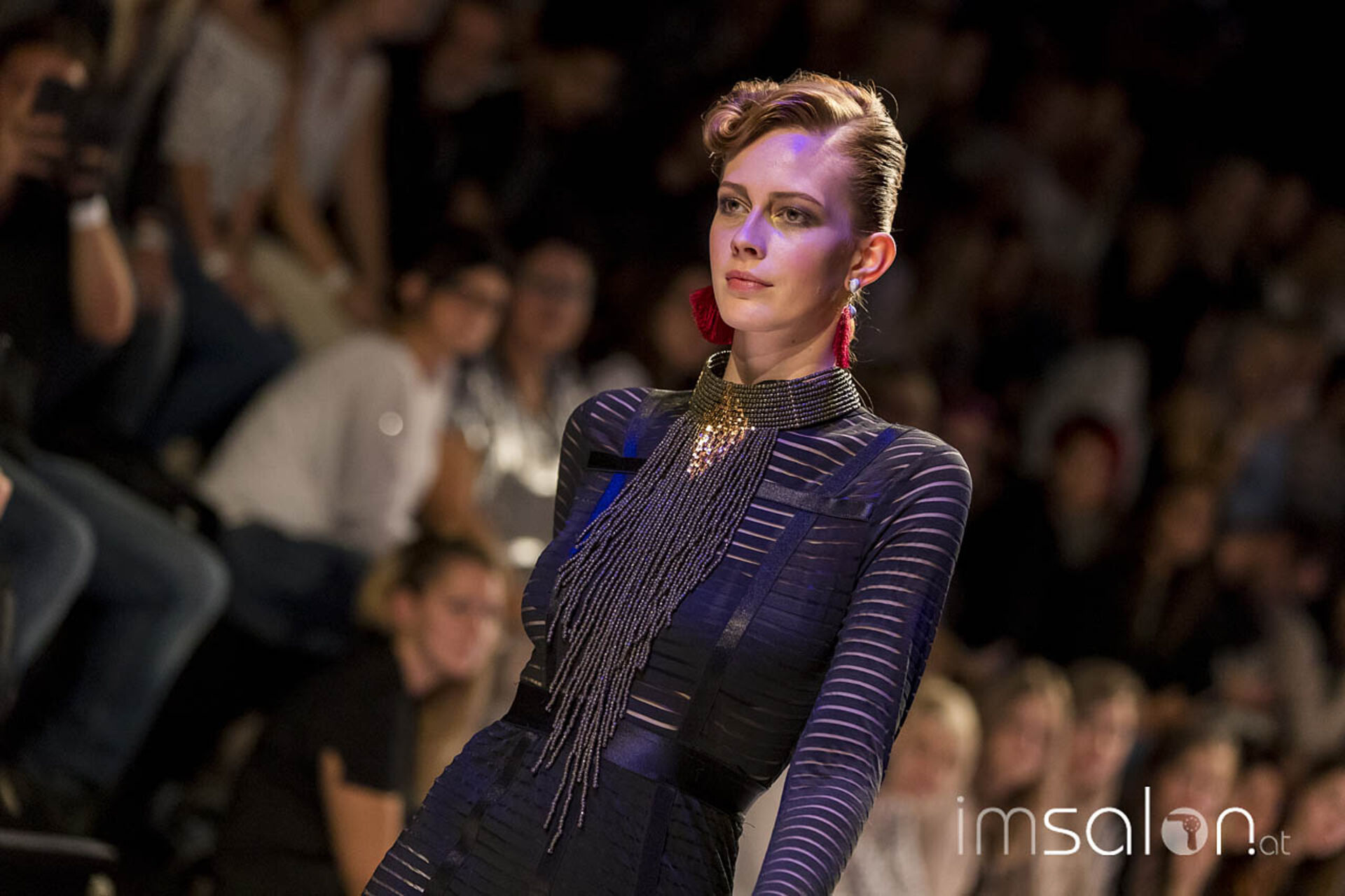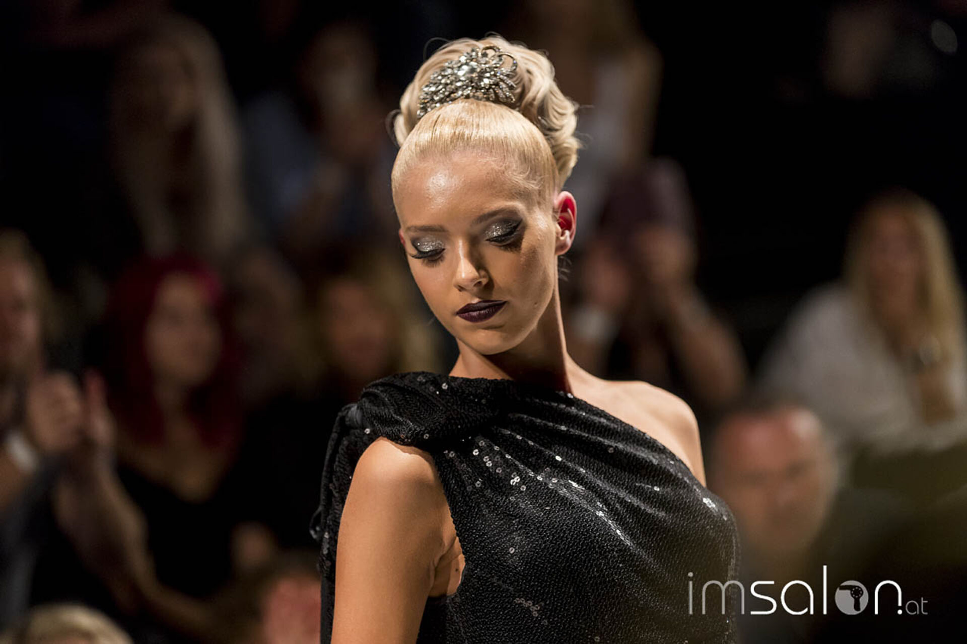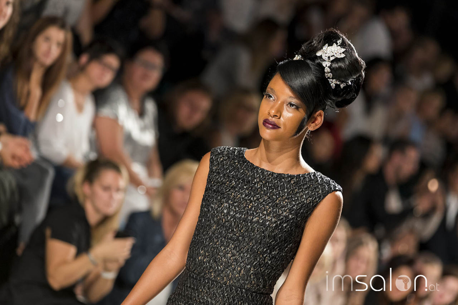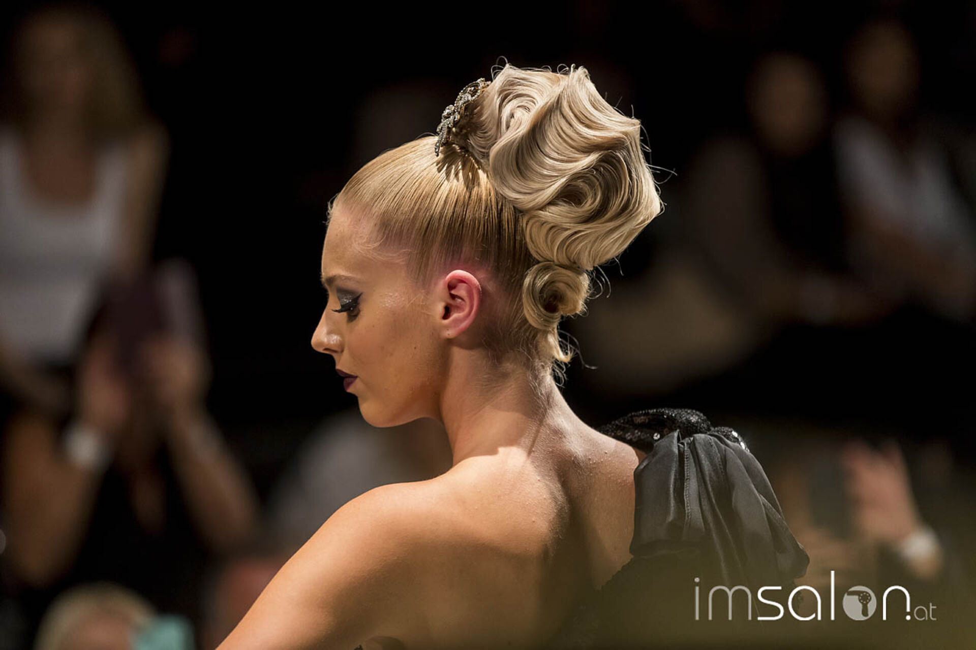 Opulent, pompös und prunkvoll waren die Frisureninspirationen des Franzosen Frédéric Pavard. "High Hair", viel Volumen und Toupage zogen sich durch seine Styles des Abends, ergänzt durch prächtig, glitzerndem Kristallhaarschmuck, der sein Revival feiert. Ein großes Thema für die neuen Hochstecktrends sind Wasserwellen, in allen Größen und Formen - Frédéric Pavard kreierte einen Allover-Wasserwellen-Dutt. Fasziniert von seiner Art, mit welch Leichtigkeit und Schnelligkeit er seine Haarkreationen an den Models anfertigte, kann man nur sagen "Très chic!"