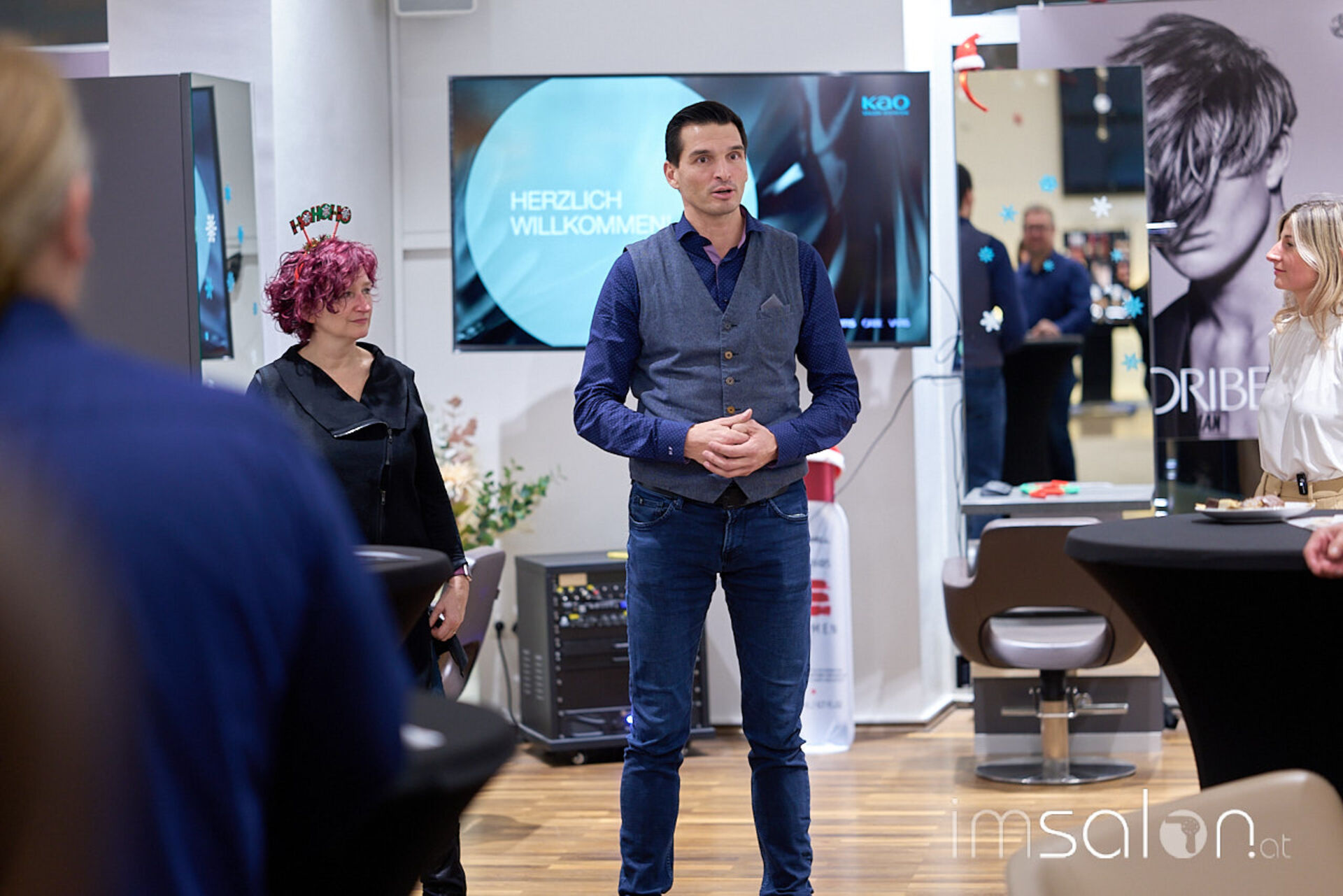 Das Kao Team um Marco Felice, Geschäftsführer Kao Salon Division Austria, lud zum Weihnachtskränzchen, um sich bei Kundinnen und Kunden sowie Partnern für die gute Zusammenarbeit zu bedanken und Birgit Ertl, Kao Education Managerin, warf einen Blick auf kommende Highlights in Sachen Weiterbildung.