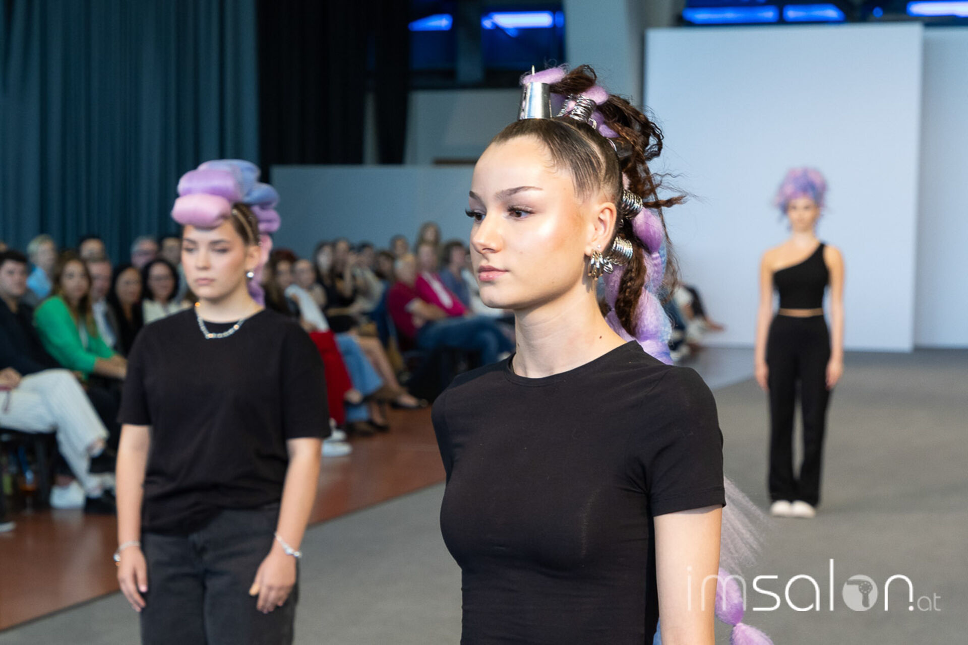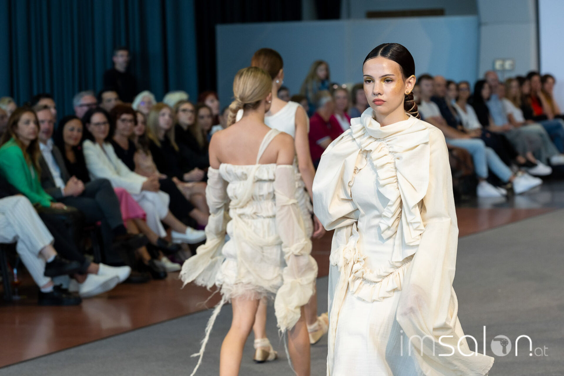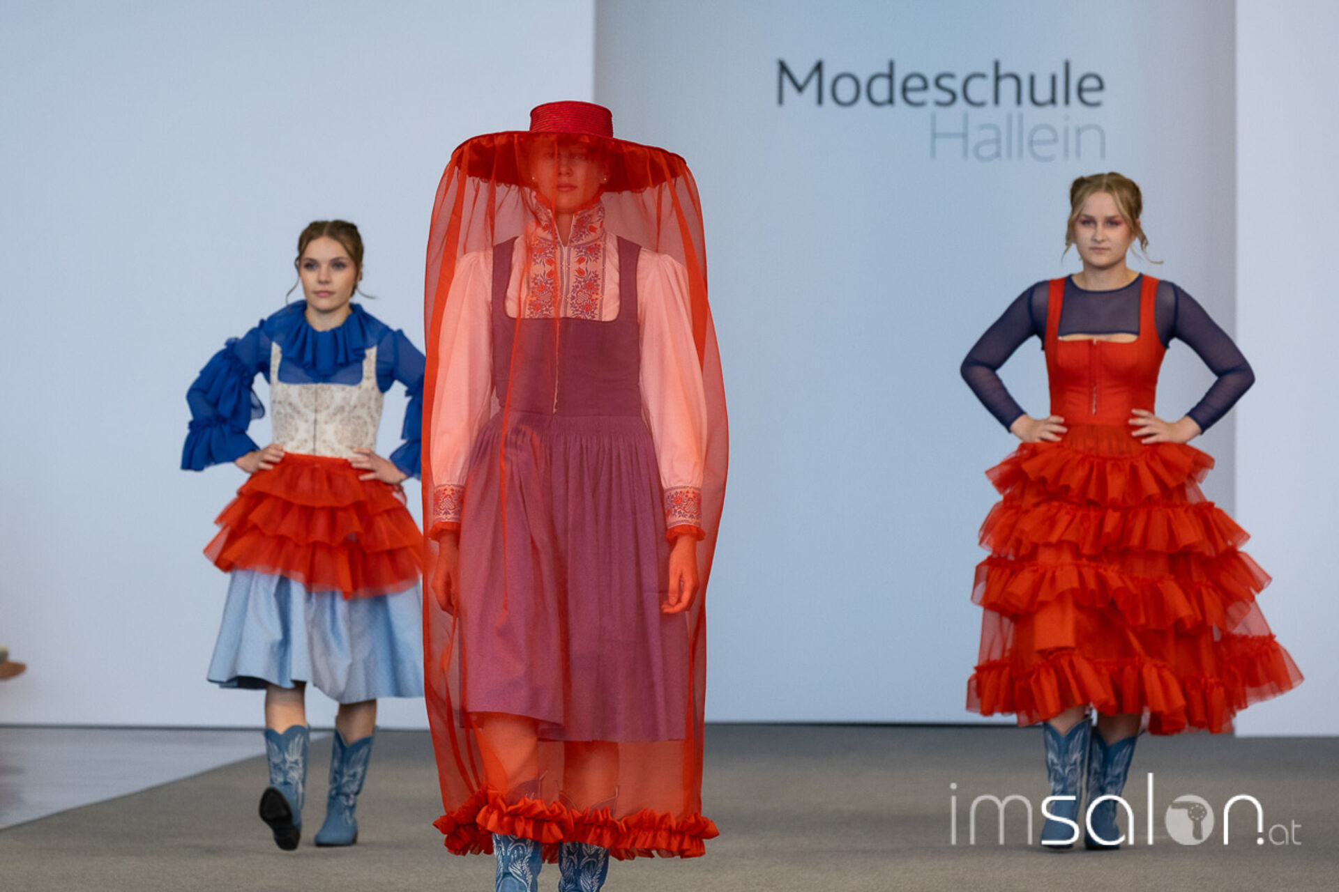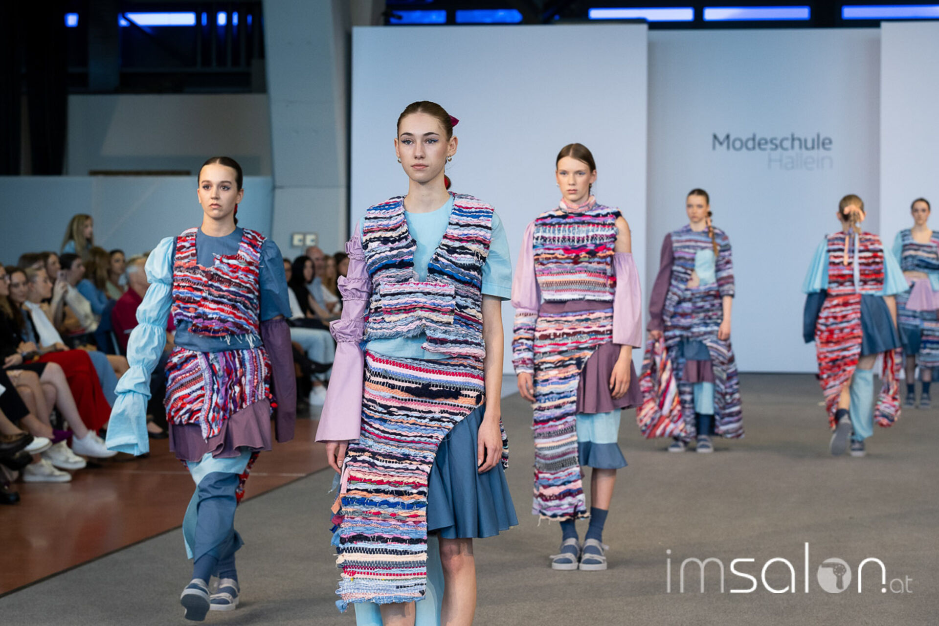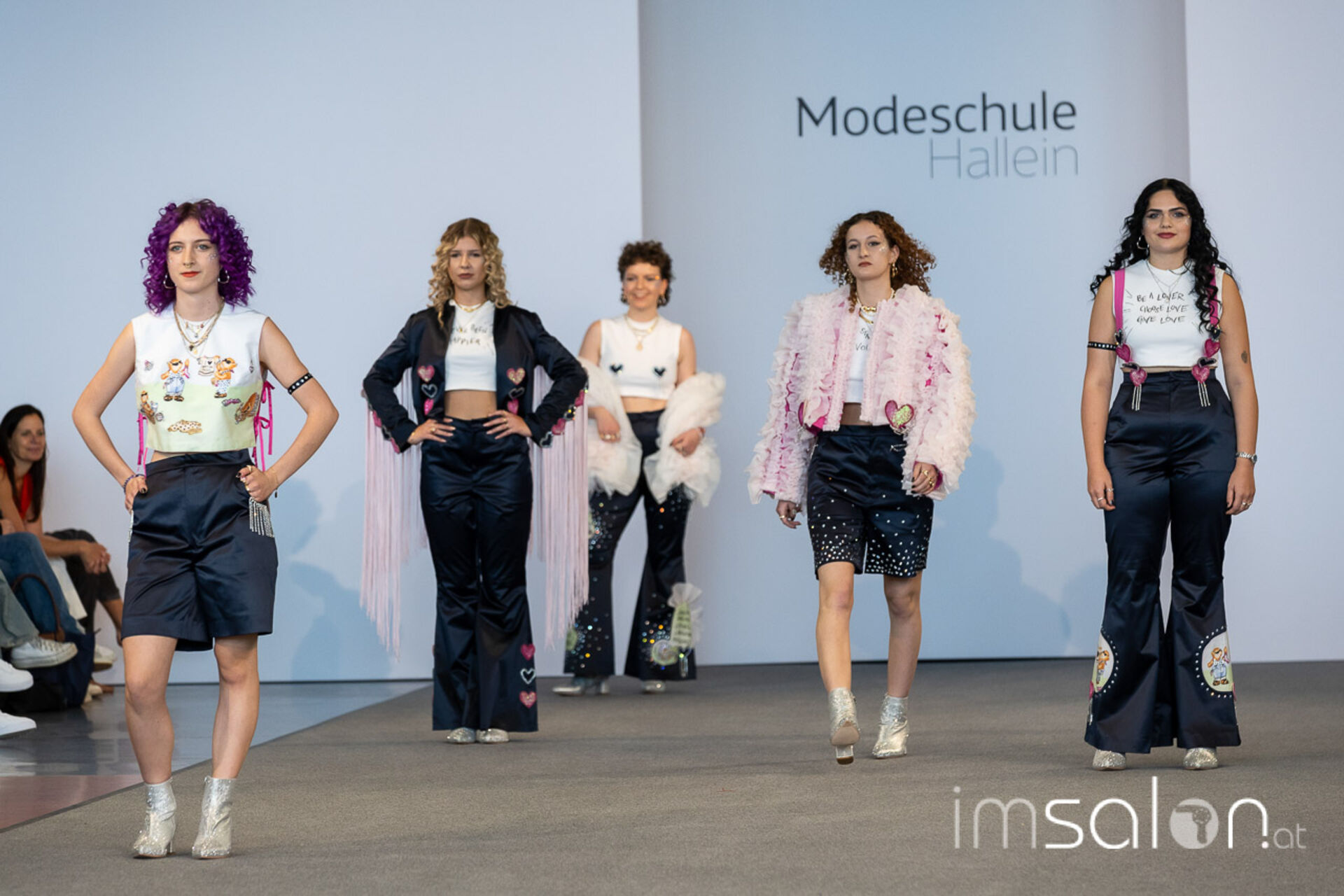 Bei der großen Fashion-Abschluss-Show im Terminal 2 des Salzburger Flughafens präsentierten die Nachwuchsdesignerinnen und -Designer der Modeschule Hallein ihre Kollektionen. Dabei wurden sie von den Schüerinnen und Schülern des Hairstylung, Make-up & Visagisten Zweiges unterstützt, die das gesamte Styling der Modelle von der Frisur bis zum Make-up übernahmen.