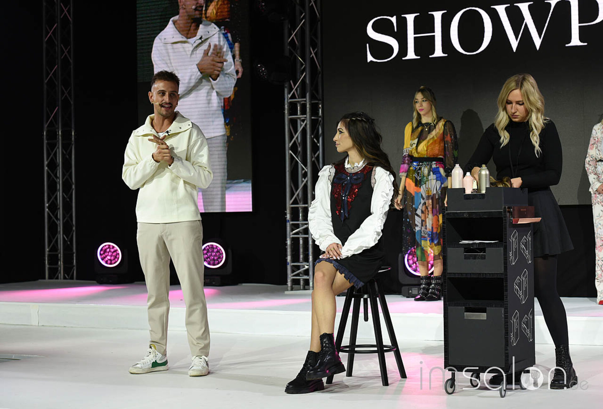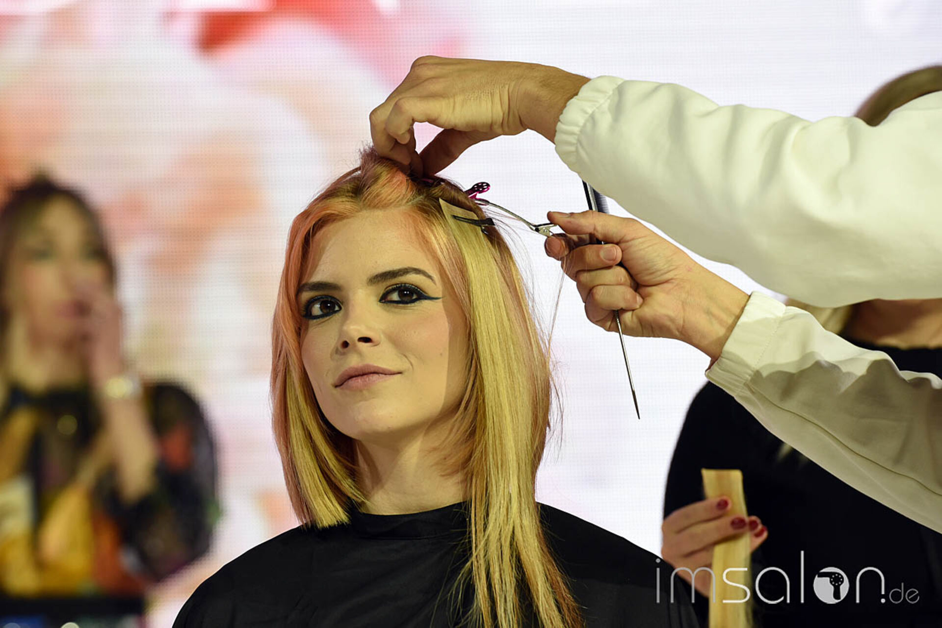 Als Alternative zu permanenten Extensions zeigte Jake Williams einen Trick, den er gerne auch bei Stars für den roten Teppich anwendet: Clip Ins, die an einer geflochtenen Basis am gesamten Hinterkopf angebracht werden. Im Handumdrehen ist der Langhaar-Look im J.LO Style auf den Köpfen der Kund*innen gezaubert.