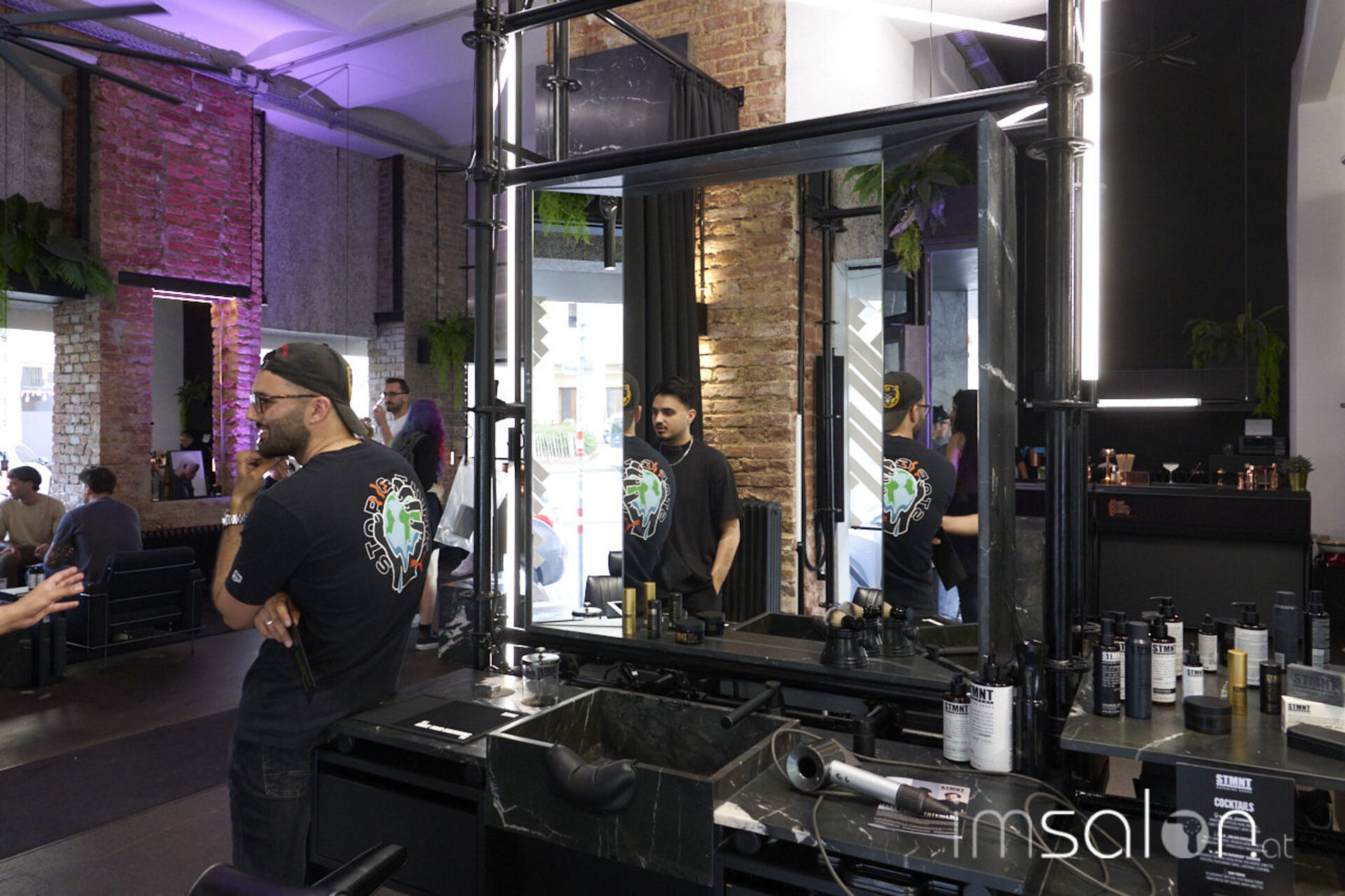 Dass es keine, wie eigentlich vermutet, Men-Look-Präsentation gab, schien hier niemanden wirklich zu stören, nutzten die ca. 50 Gäste den Abend zum Netzwerken in Sachen modernens Babering. Denn das ist es, was hinter dem Erfolgsprojekt STMNT steht: Modernes Barberhandwerk, das die Standards des Groomings neu schreiben möchte. Es geht um Lifestyle mit mutigen und authentischen Statements und einer starken Community aus Machern und Vorreitern. Seit einem Jahr erobert STMNT den heimischen Herrensalon- und Barbermarkt, ca. 700 Salons arbeiten bereits mit den Grooming Produkten.