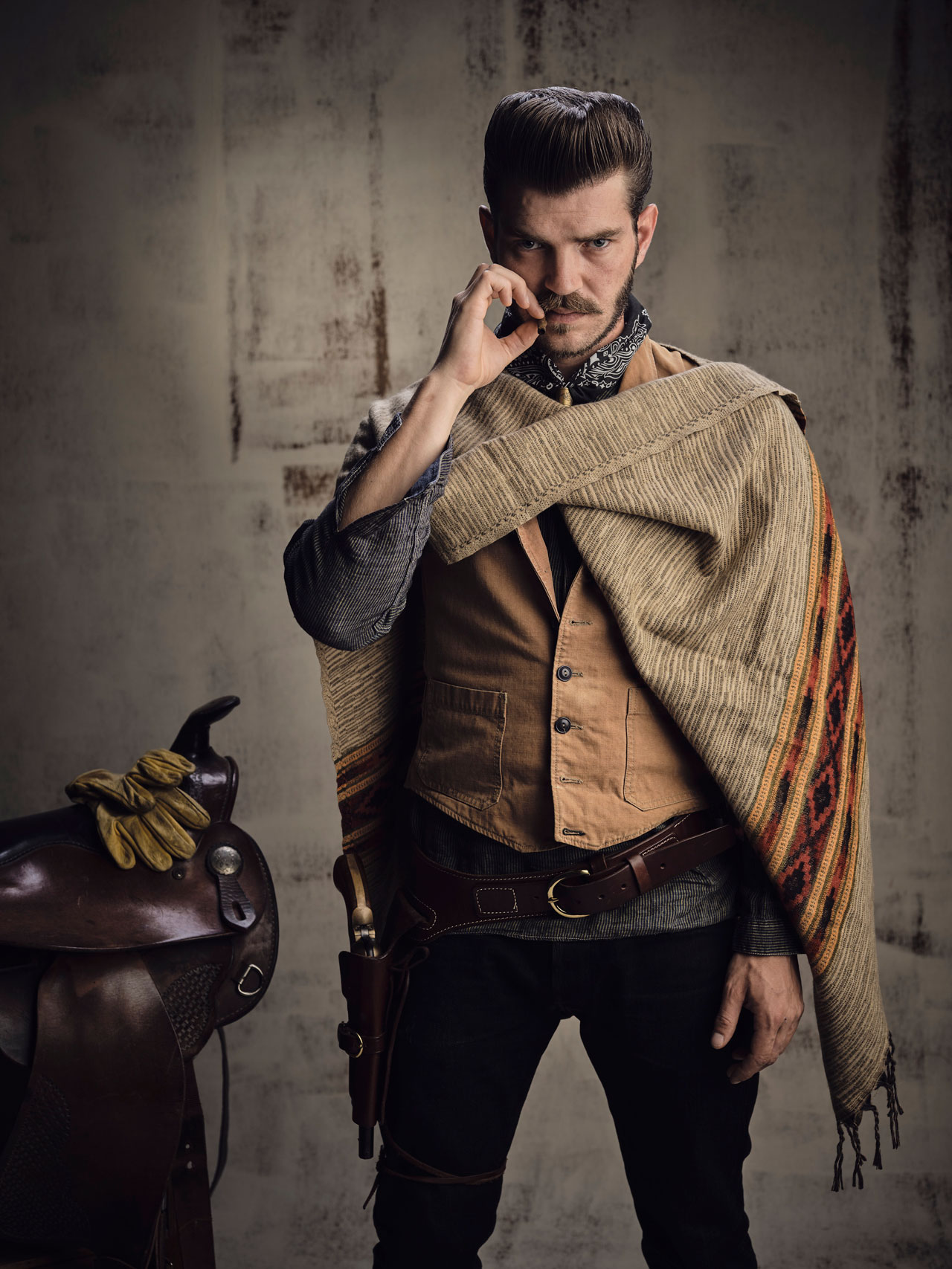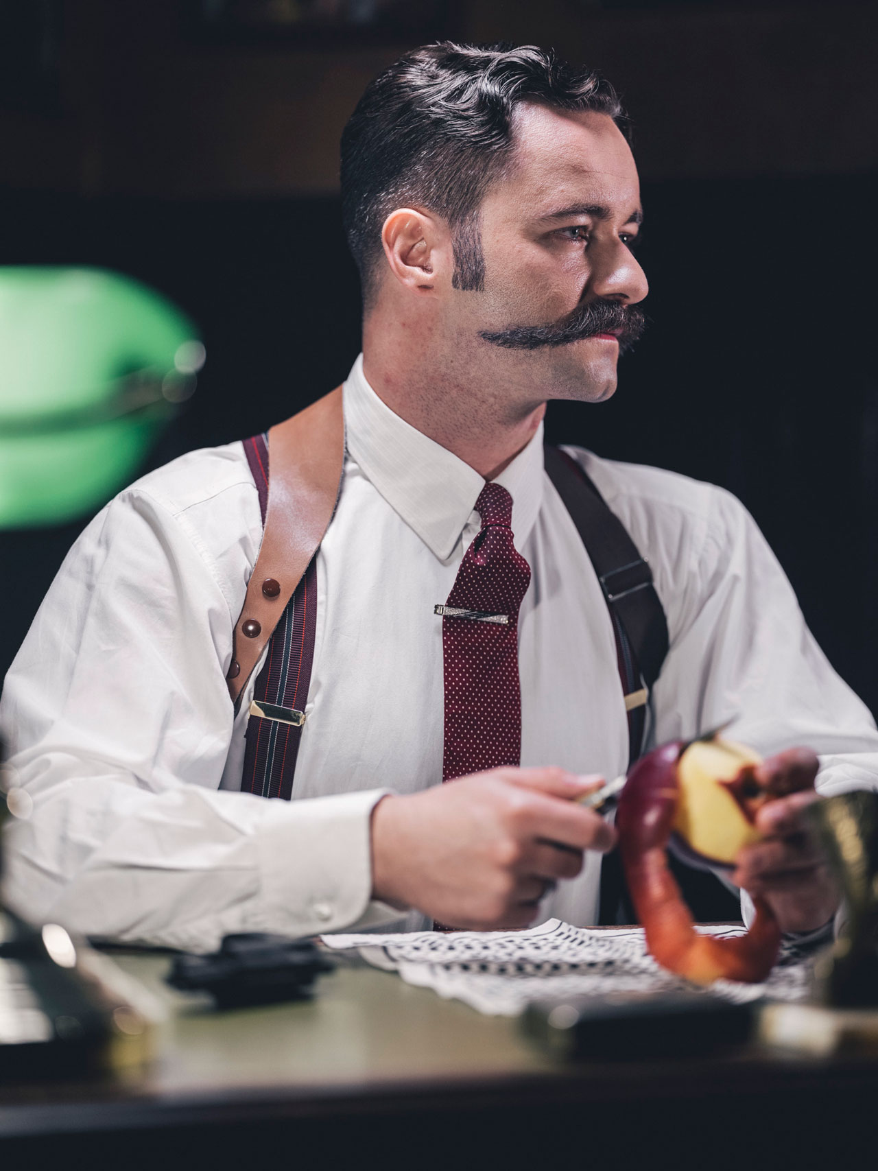 Alexander Prasser: Meine Kollektionen entstehen grundsätzlich immer in enger Zusammenarbeit mit dem Fotografen Stefan Leitner. Wir arbeiten gern miteinander und je länger eines unserer Treffen dauert, desto wilder werden unsere Ideen und Geschichten. So wie eben die Dinner-Inszenierung mit den Köpfen unter Glasglocken, die in Anlehnung an das „Große Fressen“ (Filmklassiker von Marco Ferreri aus dem Jahre 1973, Anm.) entstanden ist. Eine elegante Inszenierung dessen, was wir in unserem Geschäft als Hauptgang servieren. Generell mag ich alte Sachen und Traditionsgeschichten und hole mir dort viele meiner Inspirationen.