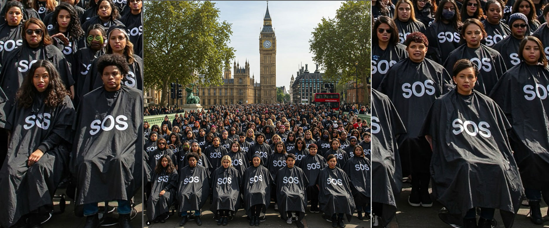 Friseure demonstrieren in GB - #SOS = Save our Salons