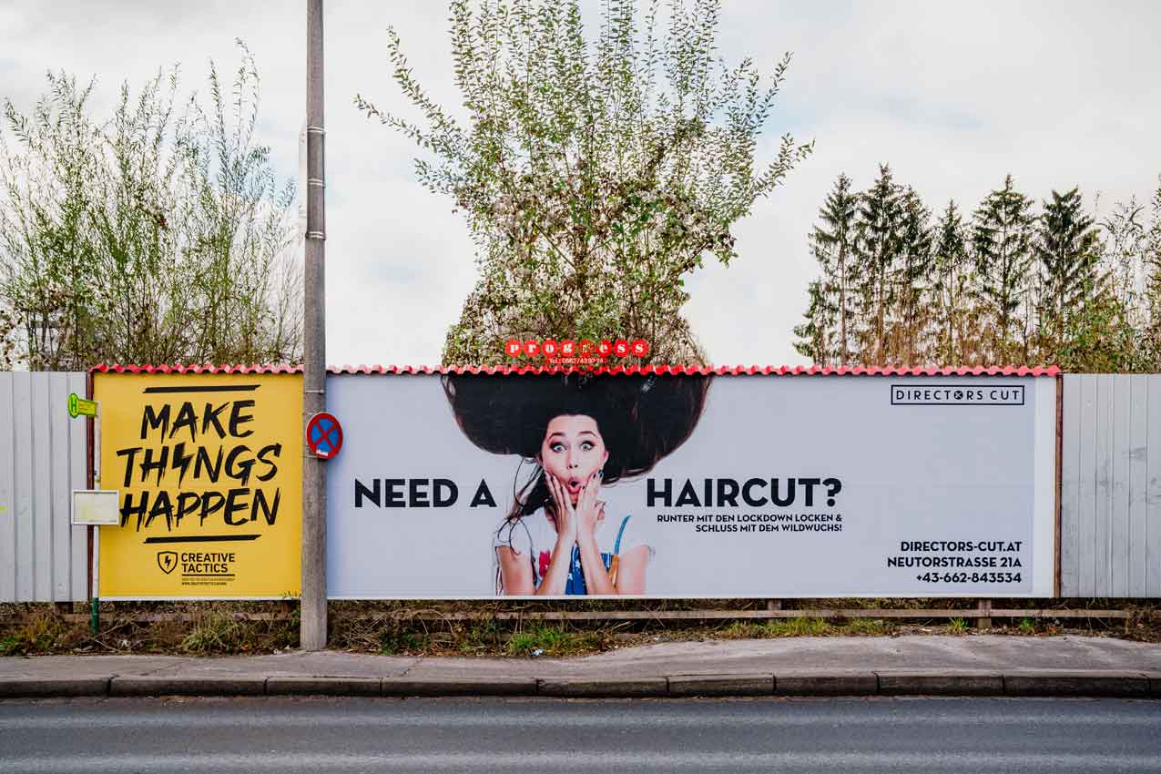 Plakatwerbung für den Friseursalon