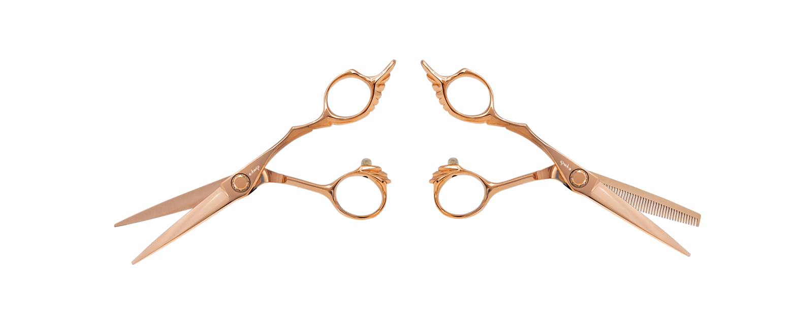 Friseurscheren-Duo mit himmlisch-goldenen Engel-Details